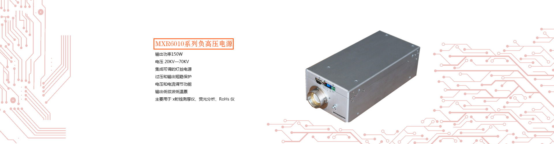 MXRN 系列負(fù)高壓電源是 X 光機(jī)專用高壓電源,射線管陽極接地易于散熱。它集成了懸浮可調(diào)的燈絲電源。電源輸出穩(wěn)定低溫漂的高壓,燈絲電源及管流閉環(huán)控制,主要用于熒光分析、RoHs 儀、 測厚儀等。